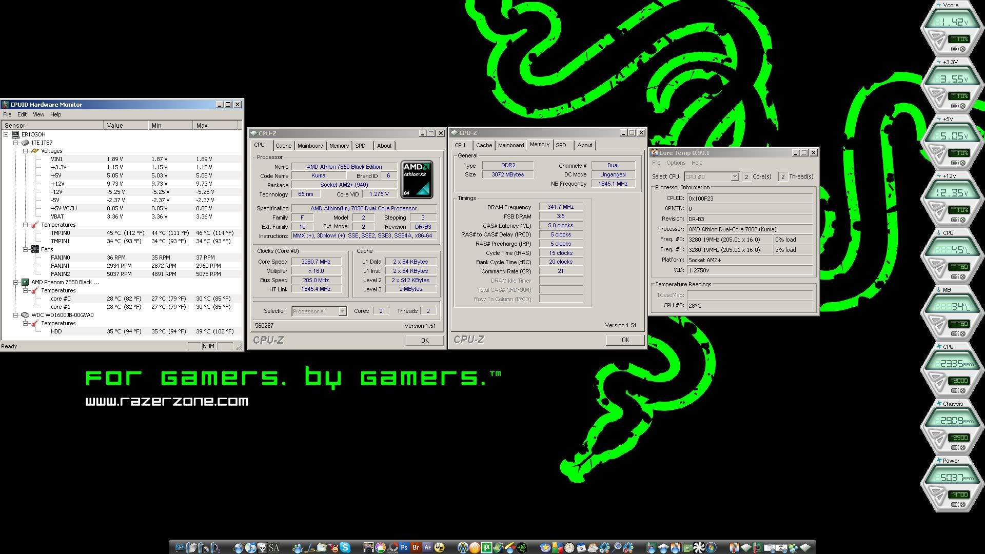QUOTE(carbonfibre @ May 5 2009, 02:58 PM) sigh people im having issues pushing my 7850BE over 3.3Ghz anything above tht i will not be able to boot up or it will restart on its on.. avoid super high multi like 16.5 & above, try to use 16 or below w/ slight htt oc, if ya chip is those which can get pass 3.3GHz w/o insane voltage then u are gud to go. i did manage to hit 3.3Ghz but d voltage was too high, makin d oc pointless since it's not suitable for 24/7. anyways should i tweak my bios or use the asus software to overclock.. not too sure.. beacuse eveything in the bios is so complicated not used to all the terms yet -.- but all i know how to change is the FSB and the multiplier.. QUOTE(kuntawakaw @ May 5 2009, 03:25 PM) y u always recomend to upgrade after the gathering? any reason? so that ppl who attend will get poisoned by a$u$ effect... pnat da pk nape...tp still dont get d answer QUOTE(carbonfibre @ May 5 2009, 03:28 PM) hey everybody i just pushed my comp further to 3.2Ghz XD want some advice should i use Asus OC software or OC myself in the bios? sifu give some advice software oc for tweakin, bios oc for 24/7. my 2 cents... http://valid.canardpc.com/show_oc.php?id=560287 This post has been edited by ah_khoo: May 5 2009, 03:33 PM |