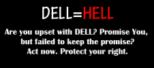 DELL = HELL Are you upset with DELL? Promise You, but failed to keep the promise? Act now. Protect your right. This post has been edited by yanhui95: Jun 20 2009, 10:19 PM |