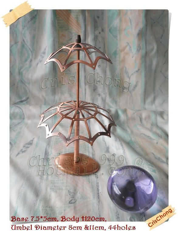 (Tall Round Spinner 24hooks) ~Allow adjustable height, round revolving single rows. Copper finished,electroplated. Stock Status (06/10/11) - Sufficient. 【FY02-02】〖RM25〗 (H)12, (L)12, (W)12 CM (3 Tier removable Square shape, antiqued handle) Top lid contain an inner mirror. 3 removable trays with different compactments designs. 1st tray are formed by two columns of ring rolls. 2nd tray contains 9 smaller boxes, 3rd tray have only two rectangle sized boxes. 【LG32-VB】〖RM10〗 (T-bar Suede Bangle Stand) ~ Display your bangle/watch/bracelet in T bar style. Surface of black velvet, made of fiberboard. Stock Status (24/06/10) - Sufficient. NEW!!【LG058】〖RM15〗 (Single-tier 20hooks) ~rectangle of single panel with 20hooks. Copper finished,electroplated. Stock Status (06/10/11) - Sufficient. 【LG052】〖RM15〗 (Small4 Tier 48holes) ~Small4 tier rectangle of single panel with 4 rows of earring holes, each rows consist of 12holes. The wider gap on last row are dedicated designed for bigger sized earring. Copper finished,electroplated. Stock Status (11/03/12) - Sufficient. All these still available? Any ring stands for display purpose? This post has been edited by beblink: Aug 30 2012, 04:17 PM |