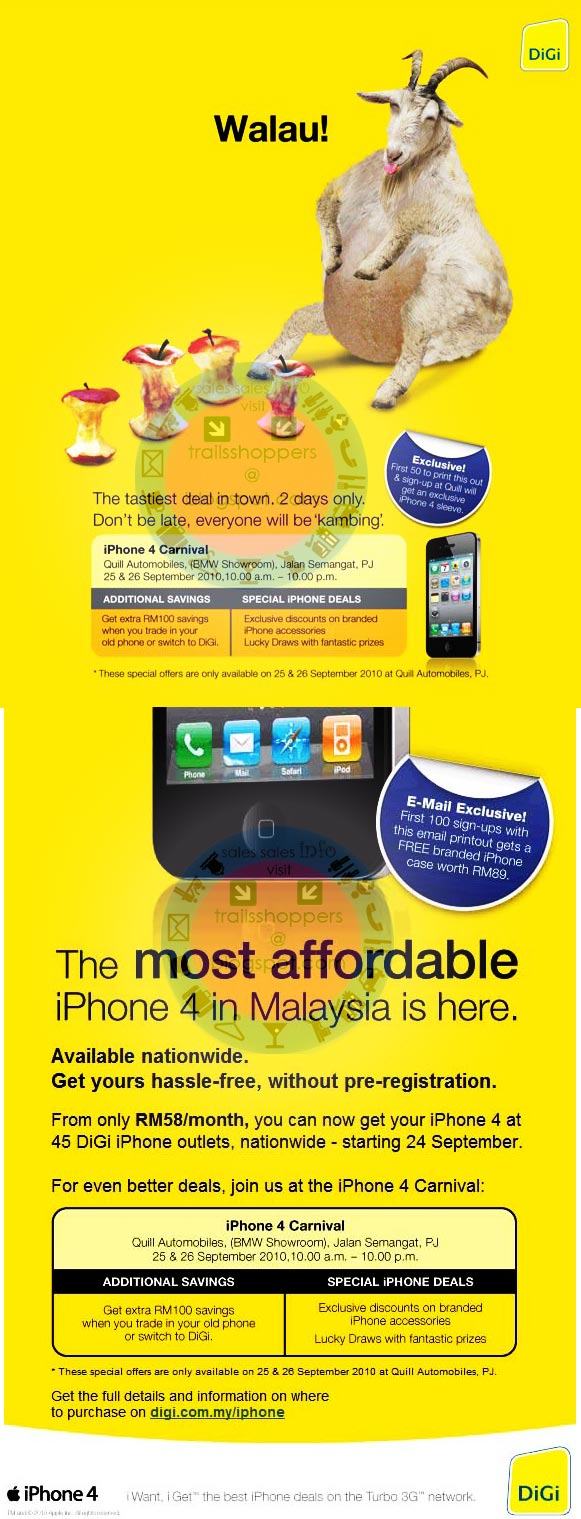 QUOTE(shinchan^^ @ Sep 24 2010, 09:07 AM) Yes, You can get the iPhone 4 from 45 DiGi outlets nationwide starting today. 24/10/2010QUOTE(goldieboy @ Sep 24 2010, 09:15 AM) Look like not only maxis offer 2 years warranty on the iphone 4 but digi does |
