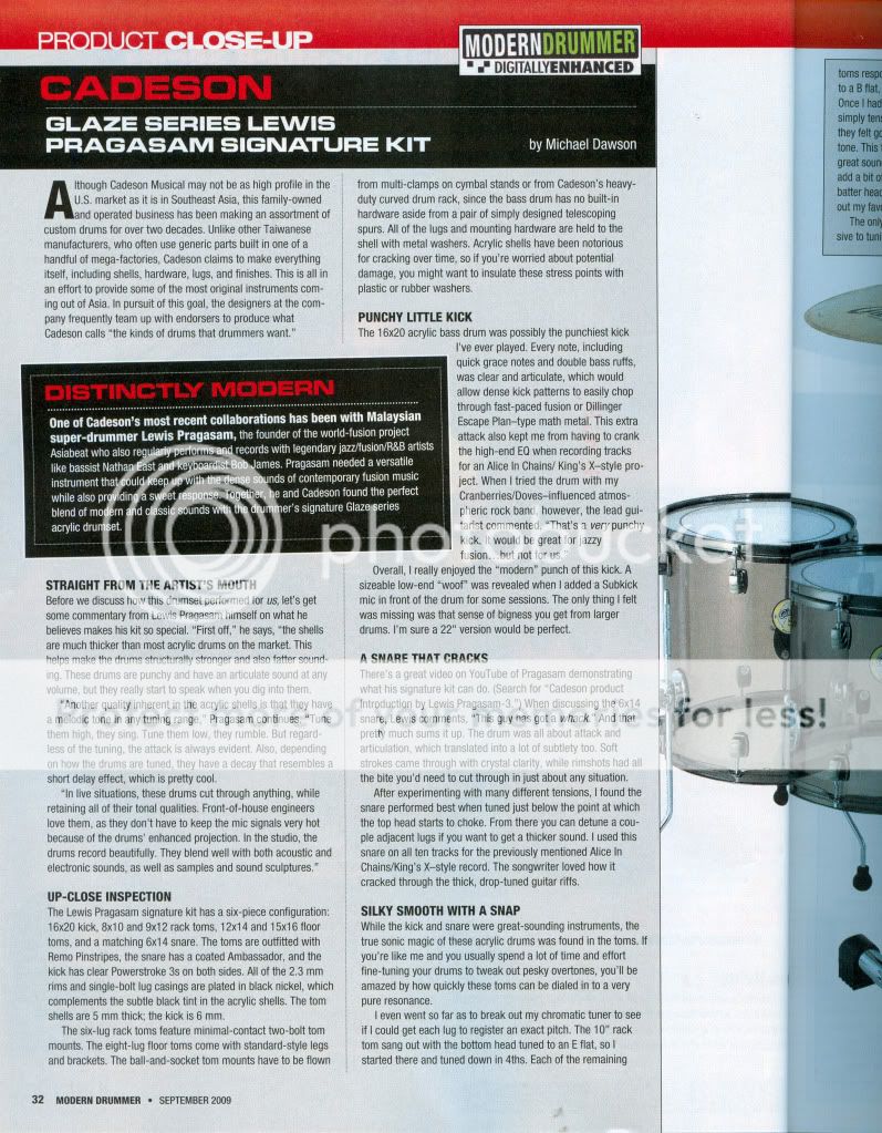 QUOTE(brokenbomb @ Feb 24 2011, 02:28 PM) I bought the cymbal in 2006 from JS music last time. I really love the cymbal, very bright and trashy. Worth the price dude. You should get it if you're looking for that kind of sound.QUOTE(treflip @ Feb 24 2011, 03:23 PM) Yeah, he has it. But I was looking for something that is very loud and sensitive, thats why I use the masterworks.QUOTE(isaacmiranda7 @ Feb 24 2011, 06:35 PM) Is it possible for you to get the Clear Piglite (6x14") snare?Btw guys, what do you think of Cadeson drums? Is it worth the money to buy them? Coz right now, I'm looking for an acrylic snare and they have one, the Lewis Pragasam signature snare. The reason why I'm considering of getting the snare is because I have the 20% discount voucher from the guitar store. modern drummer gave the kit (Lewis Pragasam Glaze series signature kit) a very good review. So yeah, anyone? |