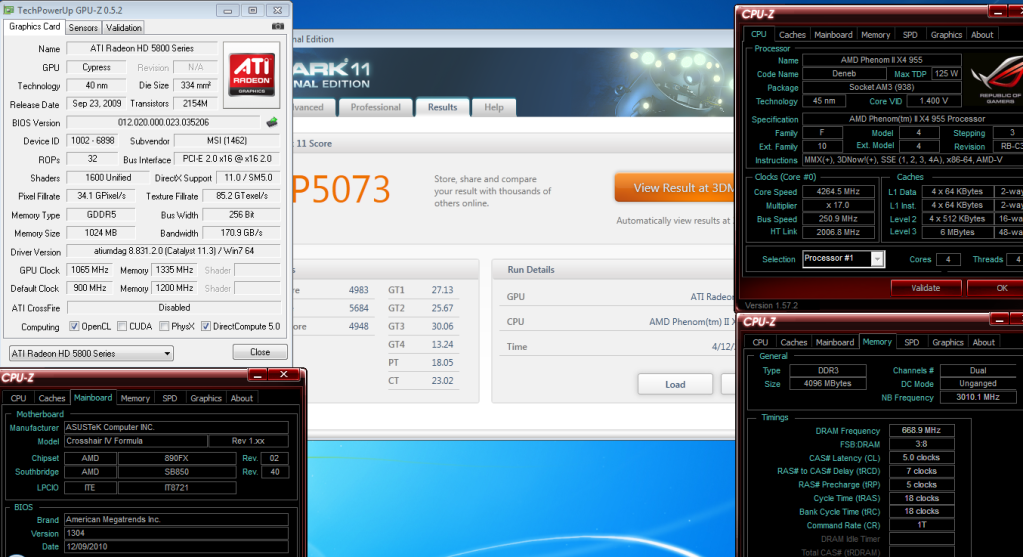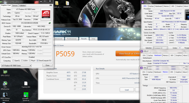 r3m0t3 @ 0.57805078 @ 4.264GHz | 3DMark11 | r3m0t3 | Win 7 x64 Ultimate | ASUS Crosshair IV Formula | AMD Phenom II x4 955BE | 250 x 17 | 2 x 2GB Kingston HyperX 1600Mhz XMP | DDR1333 5-7-5-18-1T | MSI R5870 Lightning @ 1065/1335