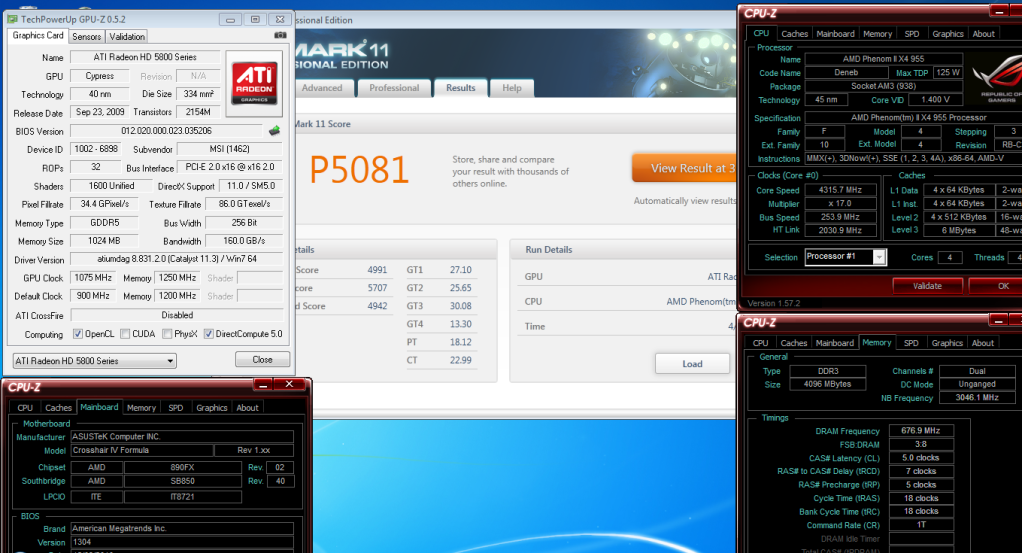 r3m0t3 @ 4.73535081 @ 4.315GHz | 3DMark11 | r3m0t3 | Win 7 x64 Pro | ASUS Crosshair IV Formula | AMD Phenom II x4 955BE | 253 x 17 | 2 x 2GB Kingston HyperX 1600Mhz XMP | DDR1333 5-7-5-18-1T | MSI R5870 Lightning @ 1075/1250