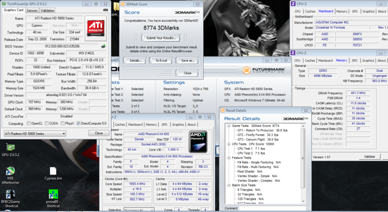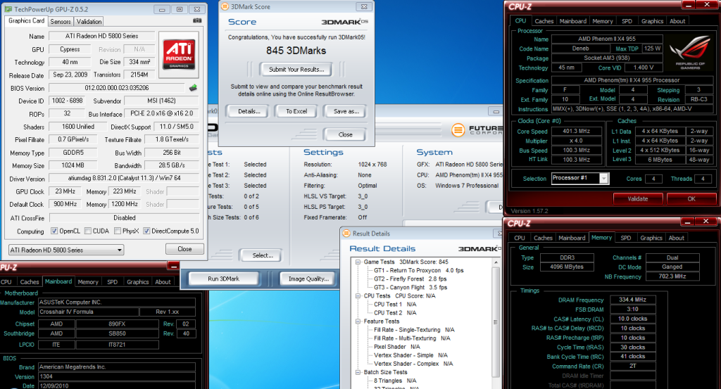 845 @ 401MHz | 3DMark05 | r3m0t3 | Win 7 x64 Pro | ASUS Crosshair IV Formula | AMD Phenom II x4 955BE | 100 x 4 | 2 x 2GB Kingston HyperX 1600Mhz XMP | DDR667 10-10-10-30-2T | MSI R5870 Lightning @ 23/223