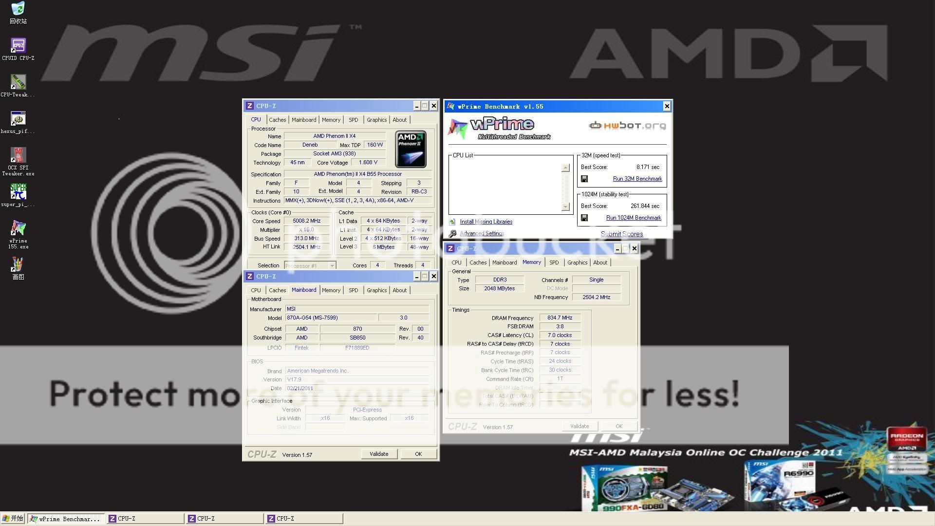 wPrime 1024M21.844 @ 5.0GHz | wPrime 1024m | kuntawakaw | Win XP 32 | MSI 870A-G54 | AMD Phenom II x2 555BE | 313 x 16 | 2 x 2GB Winova Xtune 1600mhz | DDR1668 7-7-7-18-1T |