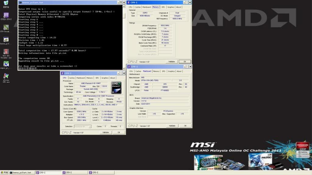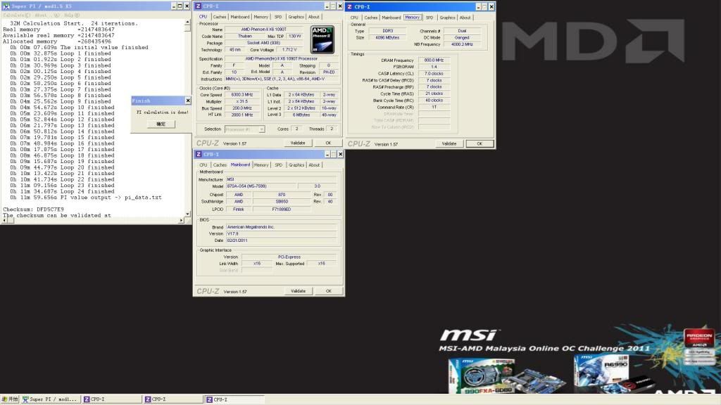 PiFast17.97s @ 6300.3MHz | Pifast | verdict | Win XP x86 Professional | MSI 870A-G54 | AMD Phenom II x6 1090T | 200 x 31.5 | 2 x 2GB A-Ram 1600Mhz | DDR2133 7-7-7-21-1T |
