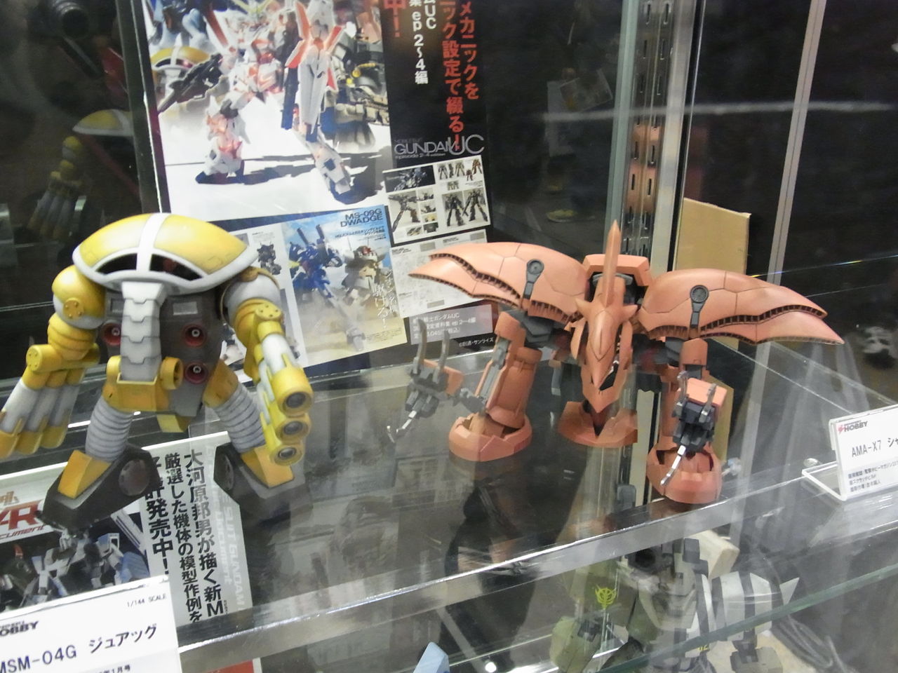 Another high-detail line is the EX model, in scales of 1:144 and 1:100 (non-humanoid units like aircraft) and 1:1600/1:1700 (spaceships), ranging from the Universal Century to Cosmic Era productions. This series is not Gundam-exclusive, having models from other series like some of the jet aircraft from Sentō Yōsei Yukikaze and at least one aircraft from Ace Combat 5.
