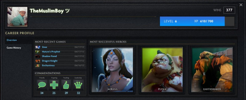 QUOTE(6shots @ Apr 17 2012, 11:45 AM) this morning watch a match, It is possible to gain exp before The Internationalthen,when i click on their dota profile, Picture only pro can level up ah? and look at that total wins..lol |