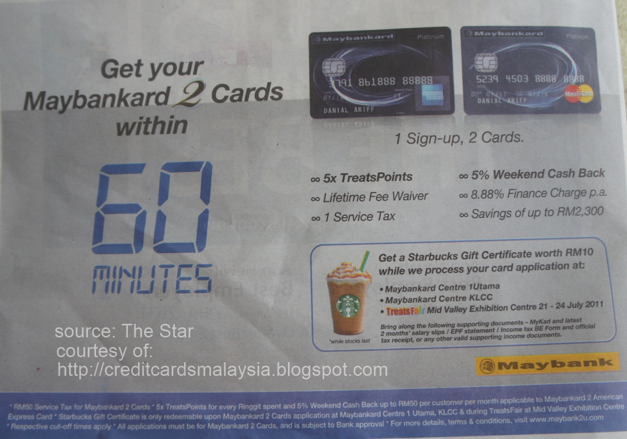 Maybank Card Centre at 1 Utama and KLCC are supposed to process your application for the Maybankard 2 Cards within 60 minutes. Click here to read my article on it.