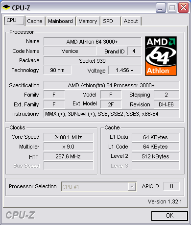 2.7GHz HTT = 301 Multiplier = x9 CPU Voltage = 1.525v Hyper Transport = 2x memory setting: 266MHz 3-4-4-8 (2T) CPUZ: http://valid.x86-secret.com/show_oc.php?id=101480 ![]() |