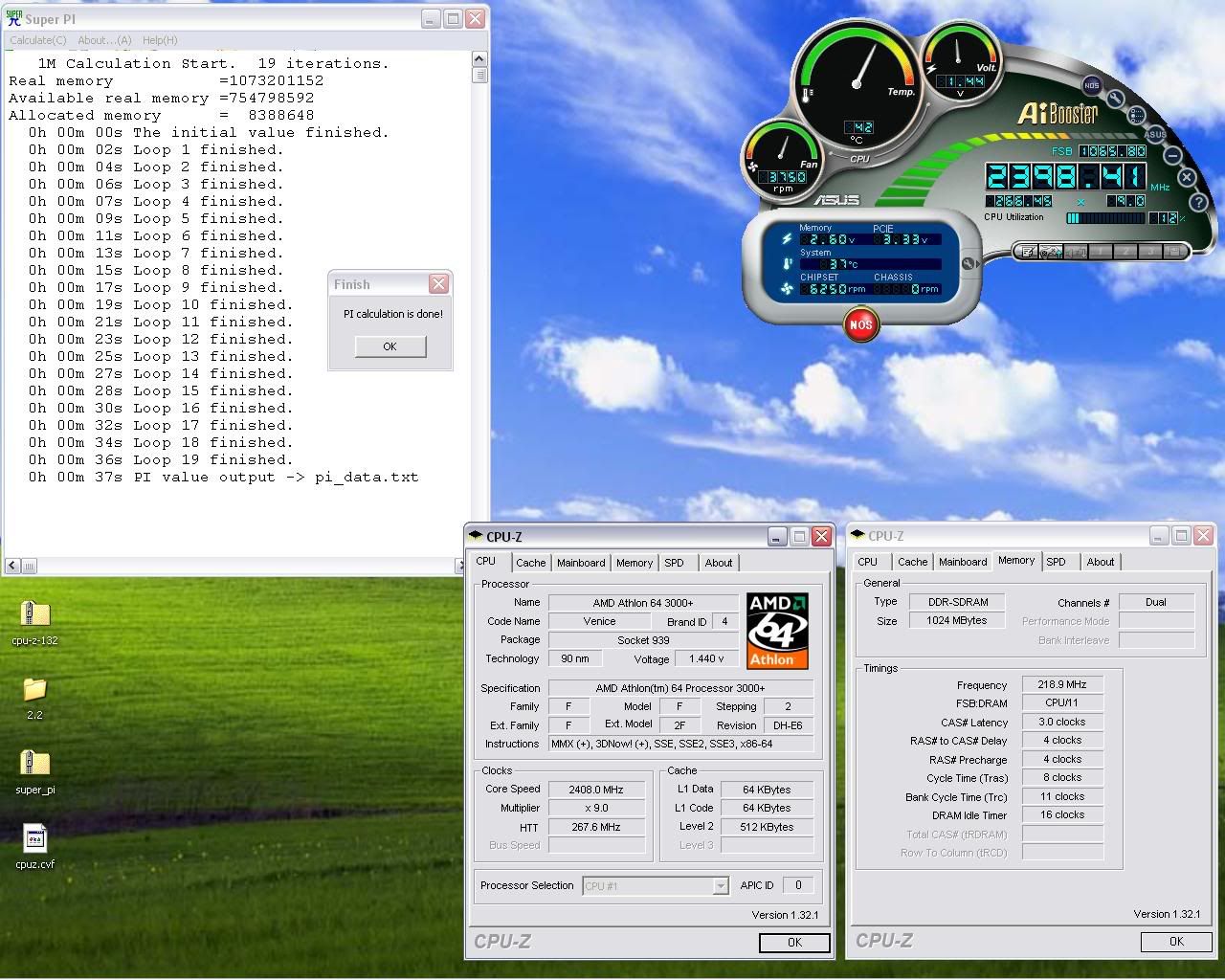 result below: 2.4GHz HTT = 267 Multiplier = x9 CPU Voltage = 1.4375v Hyper Transport = 4x Super PI (1M): http://i24.photobucket.com/albums/c17/oymy...ase/superpi.jpg CPU-Z: http://i24.photobucket.com/albums/c17/oymy...0Database/2.png 2.6GHz HTT = 289 Multiplier = x9 CPU Voltage = 1.500v Hyper Transport = 4x Super PI (1M): http://i24.photobucket.com/albums/c17/oymy...e/superpi26.jpg CPU-Z: http://i24.photobucket.com/albums/c17/oymy...tabase/2600.png memory setting: 333MHz 3-4-4-8 (2T) screenshot will be posted later *edited: as i say screenshot posted! This post has been edited by gmail: Apr 2 2006, 08:03 PM |