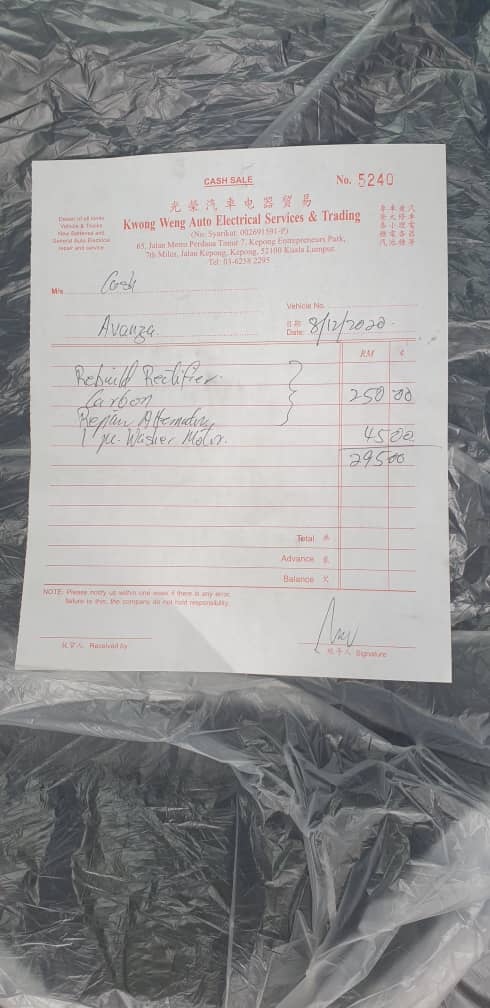 Cost was RM90 for alternator brushes and bearing including labour for removing and reinstalling the altenators, RM45 for starter bush including labour, not bad.