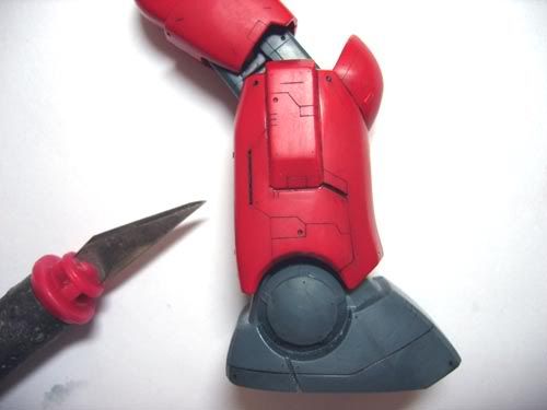 I tried with a cutting knife yesterday, but it's too hard! As it is, the 1/144 scale head is too small, so imagine the width of that streak. I think it's less than a milimeter.