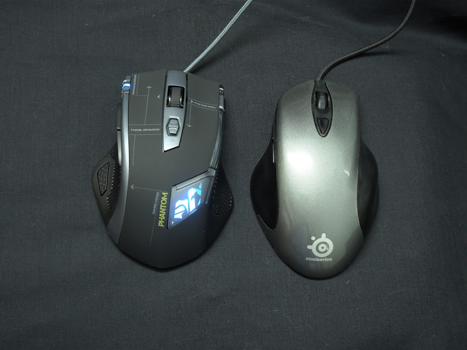 The Phantom is a sizeable mouse that will fit mostly medium to large hands. In the side by side comparison, you can see that it is about the size of a SteelSeries Ikari.