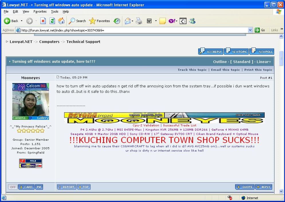 as per Mgsrulz above, this is what u get while u spamming the Helpdesk section: » Click to show Spoiler - click again to hide... « http://forum.lowyat.net/topic/554793This post has been edited by soulmate: Nov 21 2007, 11:13 PM
