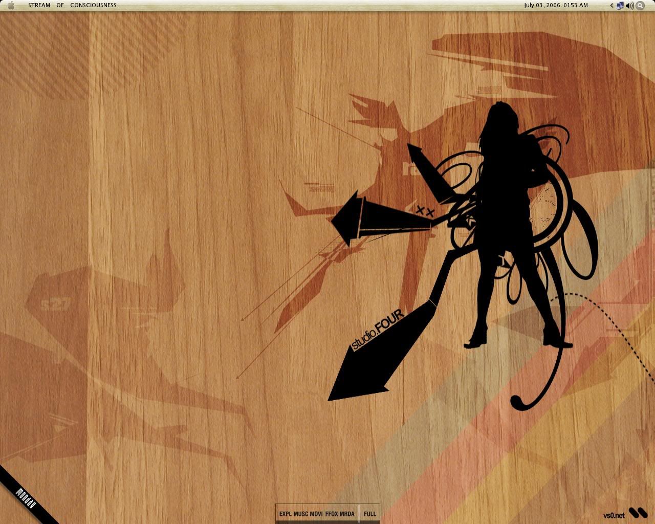 * Wallie - Studio 4 by wirestyle* VS - Muku by 326michiru* Apps: - Avedesk - Samurize - Styler - FinderBar - RKLauncher This post has been edited by newbieockids: Jul 3 2006, 03:04 AM