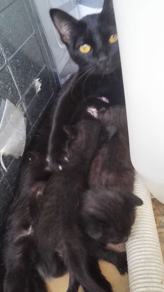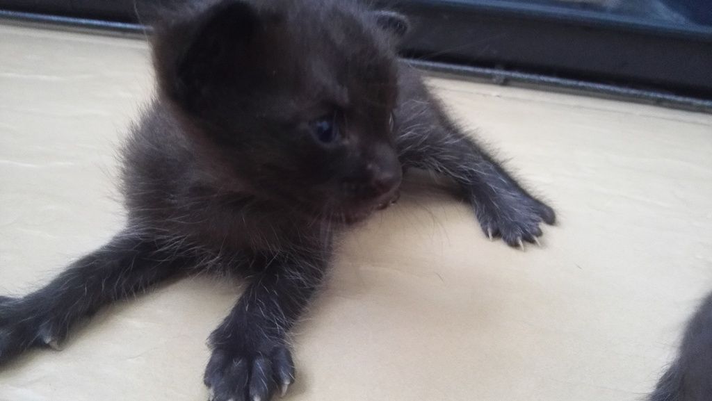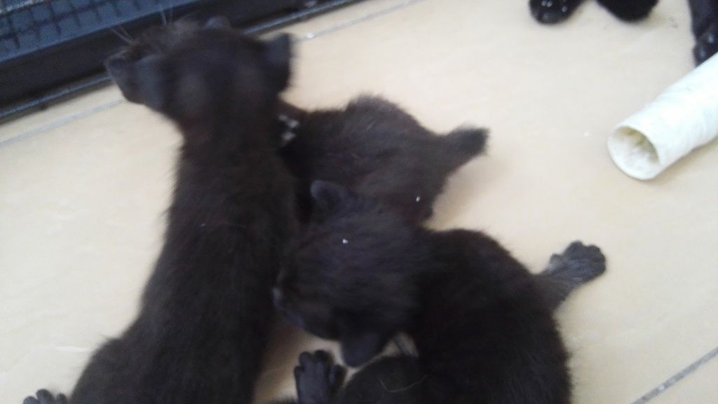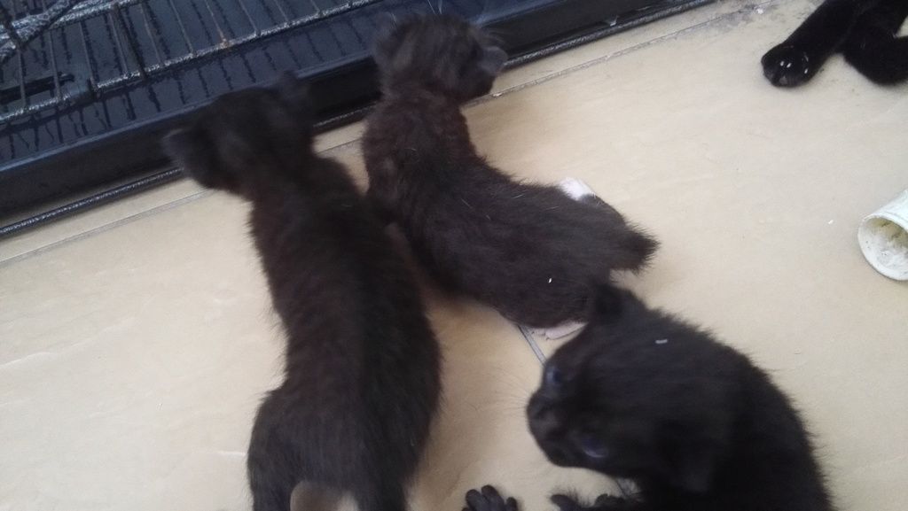 I took them home and fed them of course, and later found out that they belonged to a mother cat of my neighbor's. The mother cat had died after being attacked by a fierce dog FOUR DAYS ago. In other words, the poor little things had not eaten anything for a long while now, and had Sandy not found them and called me to them, they'd most likely end up being dead.