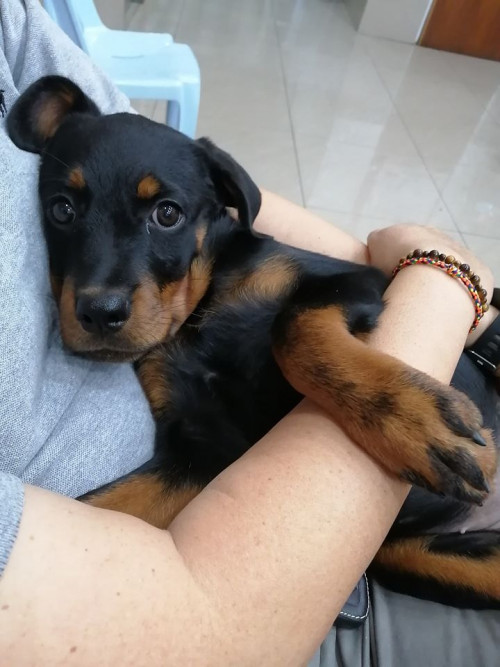 Reason for adoption/ Message for interested parties: Found her self approach to my friend house, friend can't keep her due to she is a cat person, ourself having 2 dogs and staying in condo