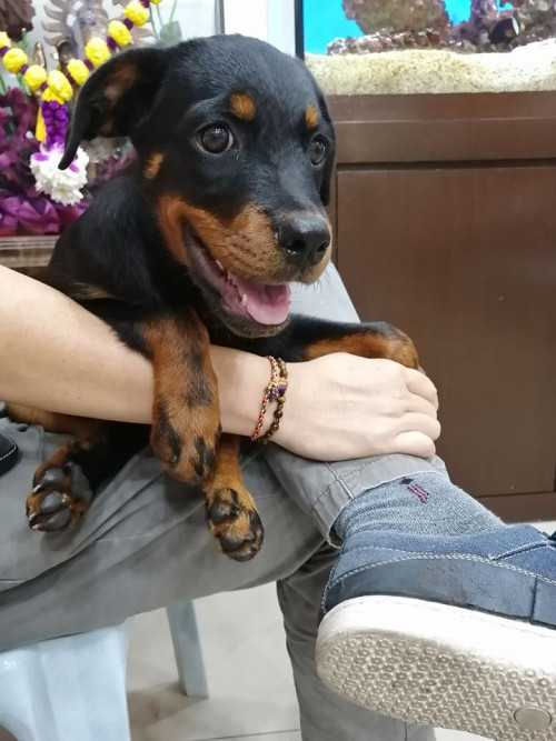 Advantage of adopting her : she is quite active and attached to owner, she could be a real good guard dog as she "attack" in playful way. She is not afraid of bigger object. We believe she can be train well.