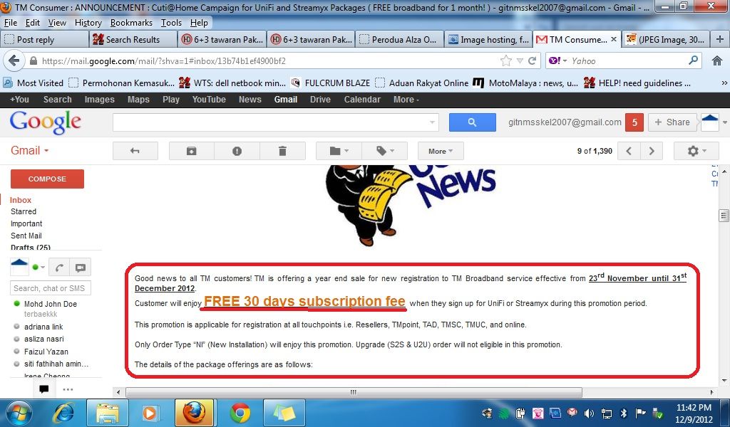 PEMASANGAN PERCUMA RM200 UNTUK UNIFI DAN RM163 UNTUK STREAMYX AKAN BERAKHIR HUJUNG TAHUN 2012 NI DAH. CEPAT SEBELUM TERLAMBAT!!!!