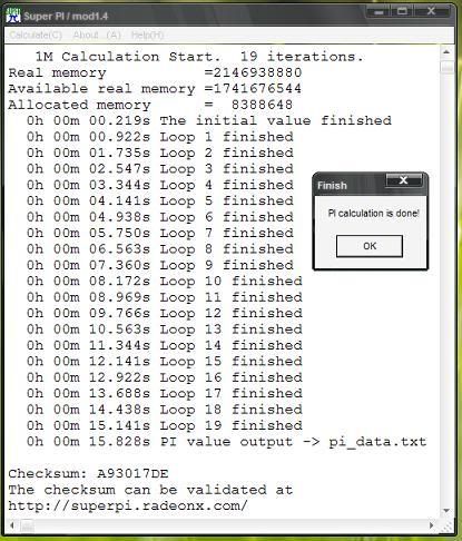 - 13.156 - rlhc17 - 3.89GHz, 433 x9 / Biostar TForce P965 Deluxe / 1GB DDRII-866, 4.0-4-3-10 / Thermaltake Silent Water