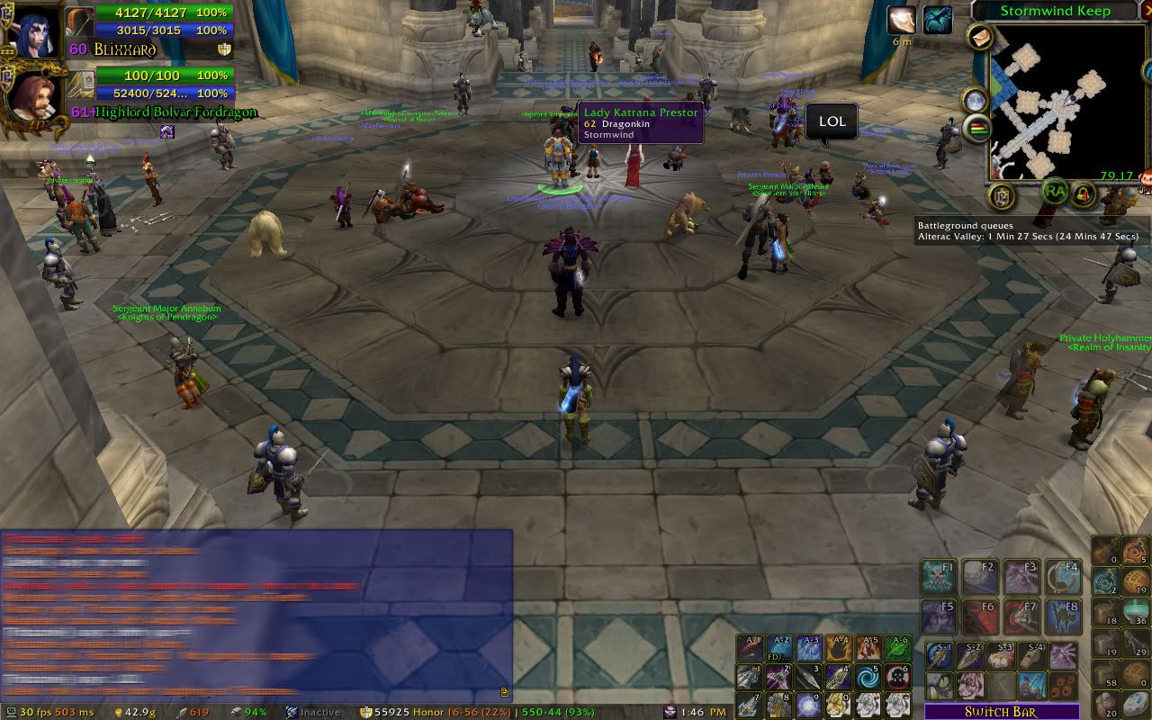 Nice UI, what are all those you're using ? QUOTE(yseng @ Sep 4 2006, 02:49 PM) Just captured 3 screen shots of wow playing on the 12.1" 1280x800 notebook. All graphic settings set to max and 2x multi sampleing. SW at nightSW again40-man AV raid