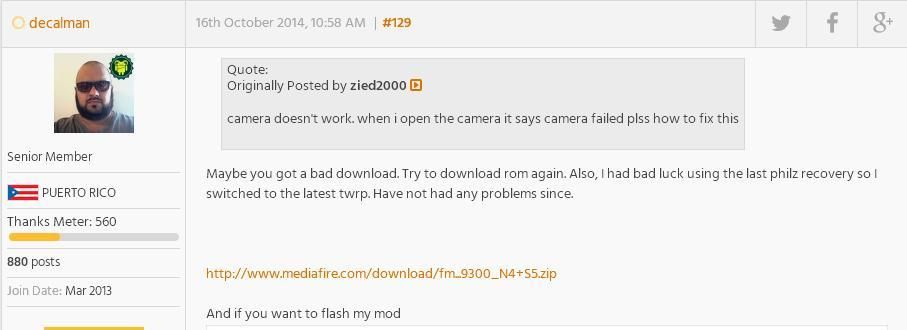 QUOTE(surefire v LED @ Dec 2 2015, 04:25 PM) No issue on my Note 4 with eRobot rom. hi bro.No issue on my wife's Note3 as well as her sister's Note3 both on Aryamod v8.0. No issue on my son's Mi3 on CM12.1 & Miui7 No issue on my friend's Note1 on Aryamod v8 No issue on my friend's S2 i9100G ( 2 units) both on OmniRom thanks for NCS suggested. my fren love it |