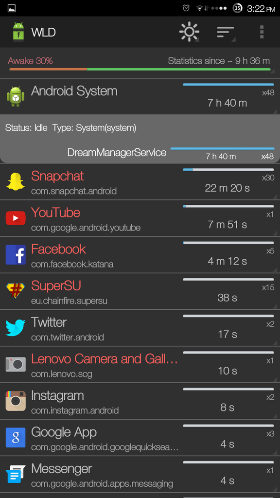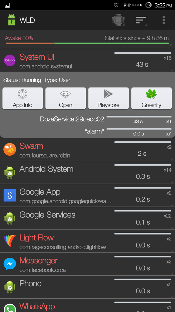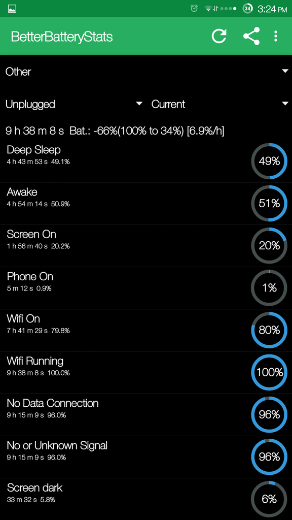 QUOTE(ckeong89 @ Mar 10 2015, 01:46 PM) u need to check which apps are running at background. u can see yr phone is keep awaking even u r not using the phone. How do I know which app is causing this to happen? Is Google Play Services the culprit? Do I have to disable the wakelock and all?» Click to show Spoiler - click again to hide... « QUOTE(harizdesu @ Mar 10 2015, 11:24 AM) so many big pictures Sorry, my bad, forgot to do so. Yeah, my Ambient Display keeps activating by itself randomly all the time and I thought it was nothing. How do I solve this? the first 3 pictures, from 3am to 9am, it seems ur phone keeps awake the whole time.. QUOTE(James_yka @ Mar 10 2015, 06:24 PM) Its seems when screen on the battery drop significantly. No, not at all. Only syncing is enable all the time. Screen brightness is only at like 30 to 40 percent at times.Is the screen running auto brightness or full brightness all the time? And the awake time during ur sleep, it should mean u have apps doing background sync a lot... Try to increase synce interval? Or r u using bluetooth device that need constant update from phone to device? Edit: I will try flashing the latest GAPPS for this ROM and see if it helps, because I've only flashed the new updated ROM and firmware available previously to update it usually. This post has been edited by JkzsBlog: Mar 10 2015, 07:06 PM |