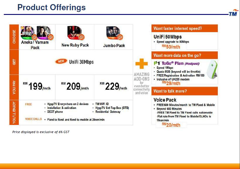 RM169.00 (30mbps) + RM30.00 (Aneka Pack) + RM50.00 (50mbps) + 6% (GST) = RM263.95nett (For 2 years)