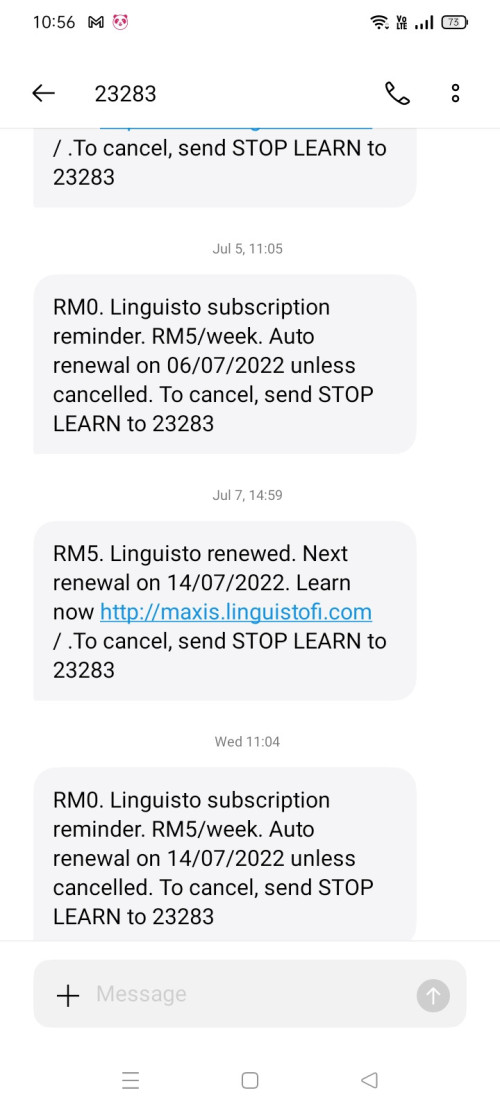 Unsubscribe SMS Spam from 23238, Receive SMS Spam that cost me RM1