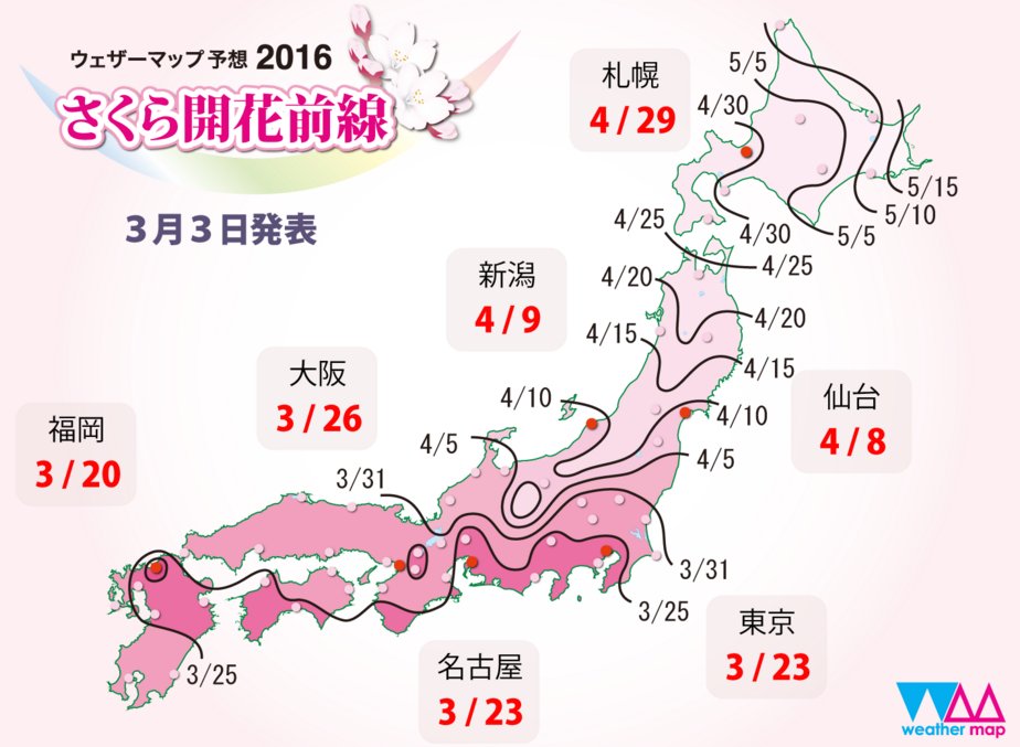 QUOTE(imhereto @ Feb 28 2016, 02:02 PM) Hello guys. I'm planning to go to Tokyo, and I would like to receive some help about the cherry blossom prediction. I would like to know about the cherry blossom prediction by the Japan Weather Association. (25th of March for Tokyo this year as for first bloom) 1) I would like to know how accurate in the past few years the prediction for the first bloom? i know the result can be affected by multiple factors, but if the prediction is inaccurate, would it usually be earlier than estimated or later than the estimated date? 2) Any advice to significantly increase my chance to see full bloom of cherry blossom in Tokyo regardless of the accuracy of the prediction? I'm planning to go only for a week maximum, so I hope that I'll be able to see it when I'm there. Many many thanks guys  you can refer to the past years' report by www.japan-guide.com