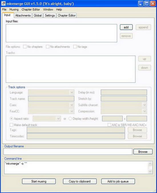 MKVToolnix -- Matroska toolsMKVToolnix is a set of tools to create, alter and inspect Matroska files under Linux, other Unices and Windows. http://www.bunkus.org/videotools/mkvtoolnix/InterfaceSupported files formatDownload Links (Windows Installer) :Unicode enabled and non-UnicodeMKVExtract -- Matroska toolsThis is command line tool to extract MKV files into movie, audio & subtitle stream.This program does not support drag & drop. You can download GUI for this program hereProblem :Q : I already download GUI from above link but how come I get the error like this : A : You need to have this 2 programs that reside together in the GUI folder, mkvextract.exe and/or mkvmerge.exeQ : Where can I find those 2 program ? A : If you already download MKVToolnix -- Matroska tools, then go to the installation folder ("C:\Program Files\MKVtoolnix") and copy those 2 files in your GUI folder.That should solve the probrem. This post has been edited by keyz: Dec 20 2006, 12:58 PM