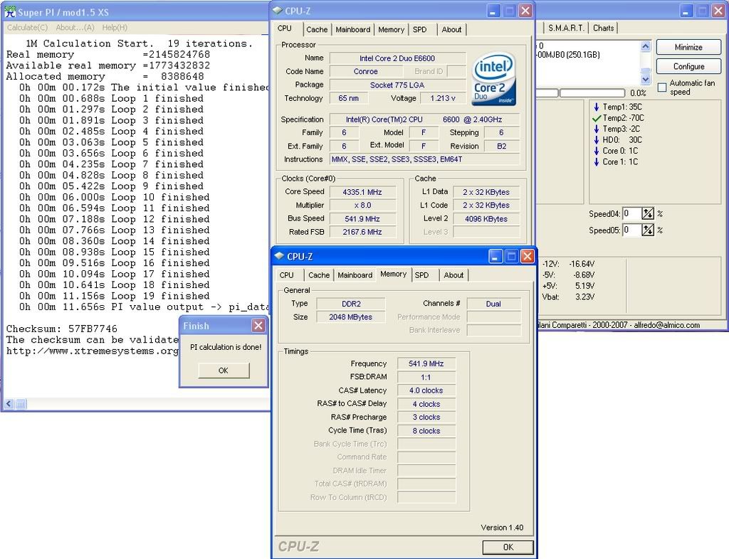 - 16.906 - irenic - 3.50GHz, 438 x8 / Biostar TForce P965 Deluxe / 2GB DDRII-876, 3.0-5-5-15 / Intel Factory Heatsink