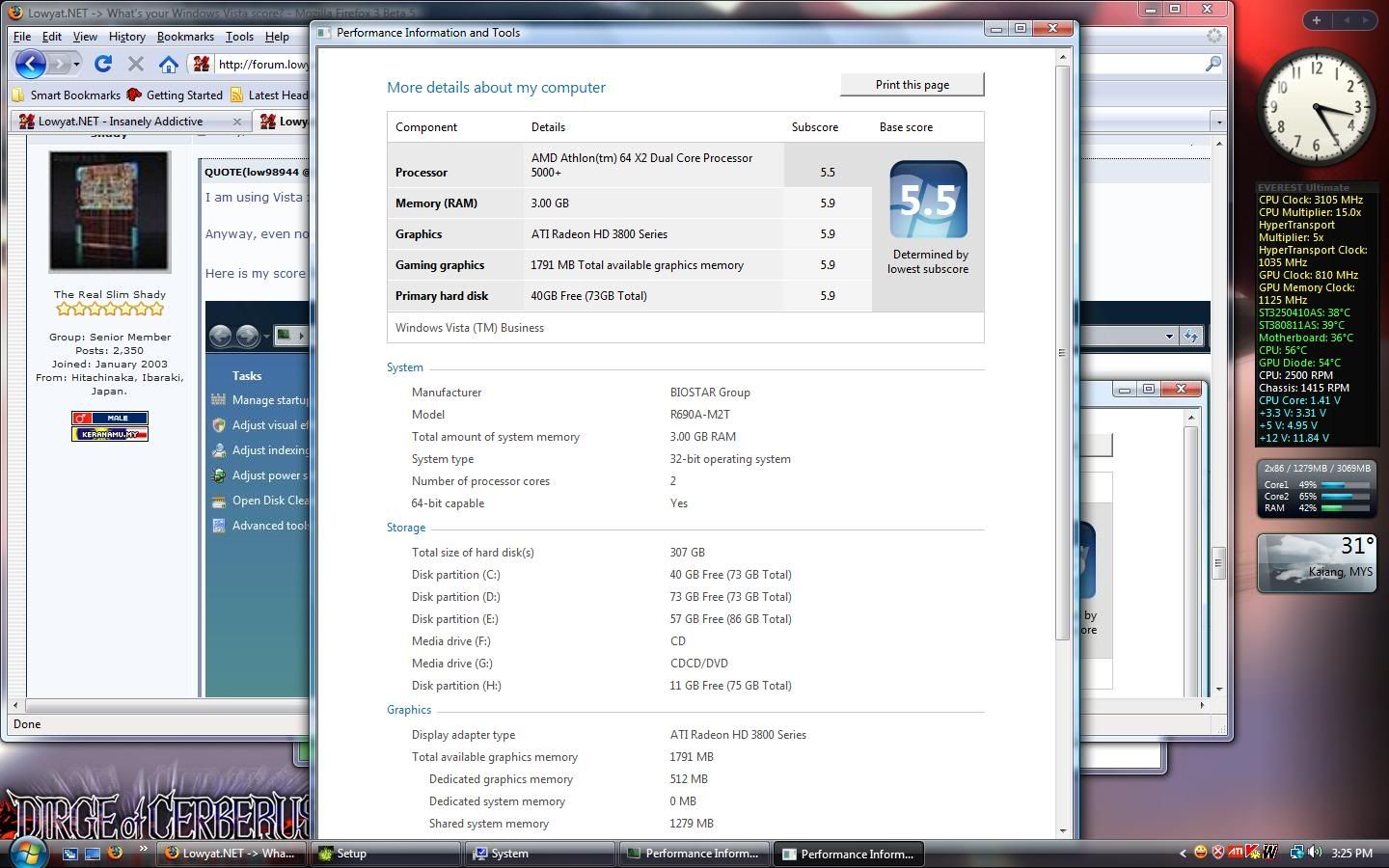 1) CPU- Dual Core need around 3.3Ghz to get 5.9. Any quad core CPU even at low speed will get 5.9. Thats why Phenom 9500 and Q6600 at stock can get 5.9.