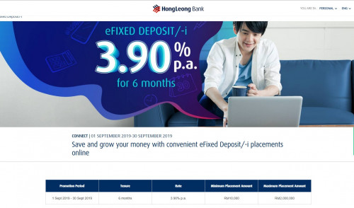 HLB eFD promo 3.90% p.a. tenure 6 months. Promotion Period: 1 Sept 2019 - 30 Sept 2019