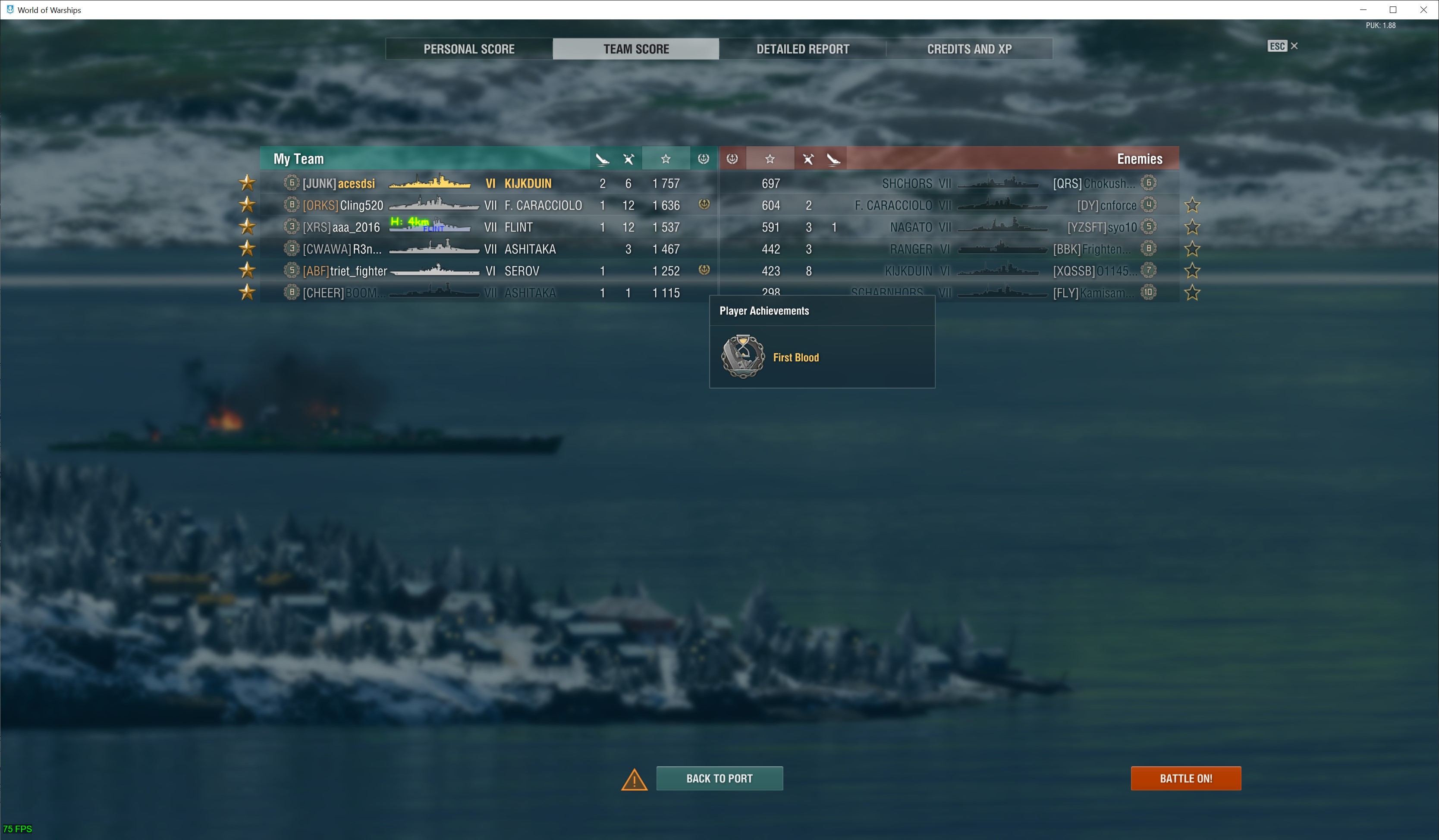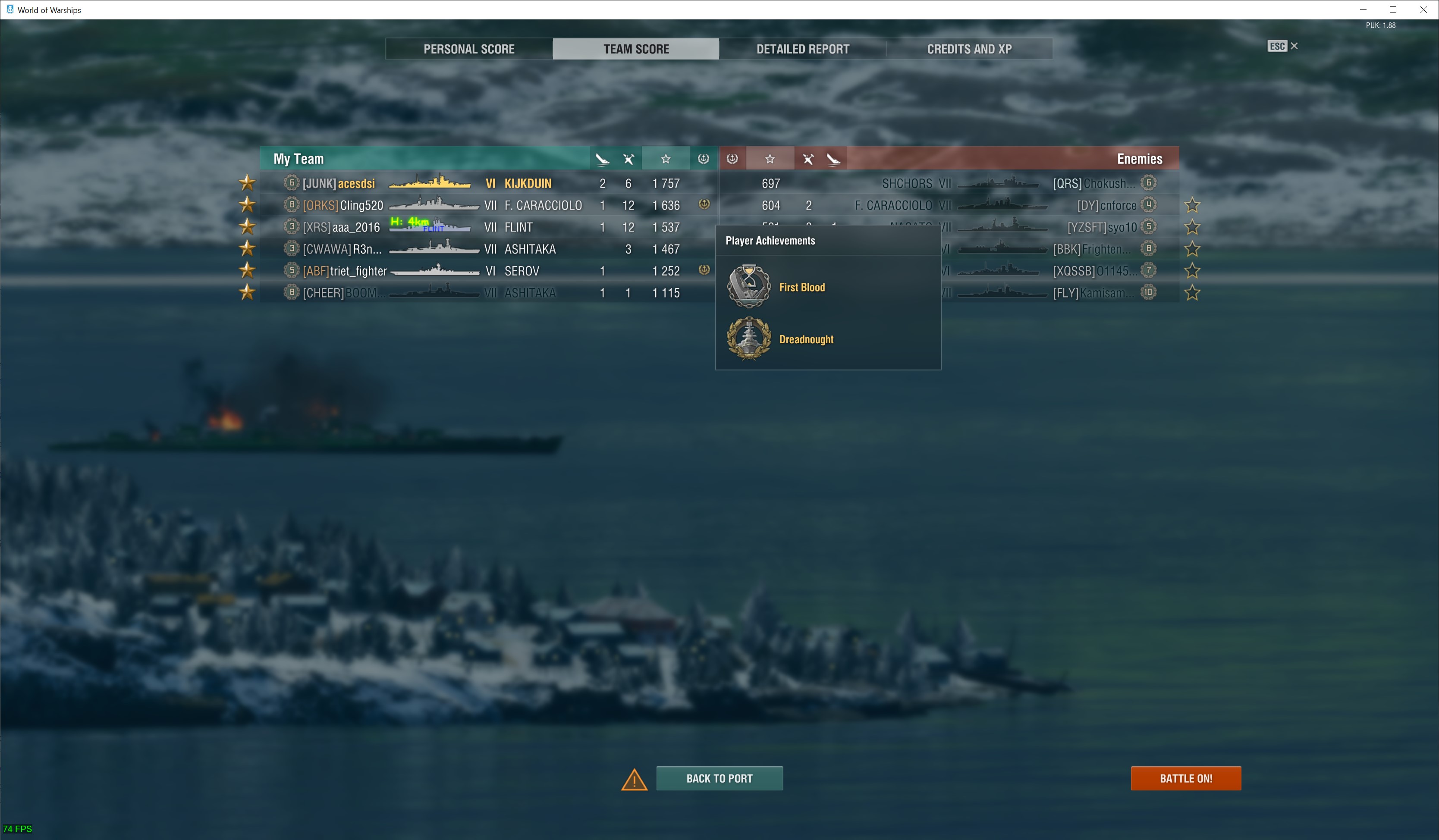 ![]() Perth Commonwealth Premium Tier VI Cruiser worth 5,100 Doubloons valued at MYR 93.43 in the Premium Shop w/o commander. Based on the Leander Tier VI Tech Tree British Cruiser. ![]() Kalmar European premium Tier V destroyer. Not really putting an effort to get Niord Tier IX Premium Battleship but received my second dockyard ship from completing stage 8 of the current Hamburg Dockyard event. Based on Visby Tier V European Tier V destroyer. Ships bought from the previous Event Pass Chapter 1 and 2: A steal for 2,500 doubloons for the 2nd progression line including other rewards. ![]() Teng She Pan-Asian Premium Tier VII battleship with 0 skill points commander. ![]() How it appears with the Special Ships Decorative elements disabled. Based on Sinop Tier VII Tech Tree Soviet Battleship. ![]() Lugdunum European premium Tier VII battleship with 0 skill points commander. ![]() How it appears with the Special Ships Decorative elements disabled. Based on Lyon Tier VII Tech Tree French Battleship. |