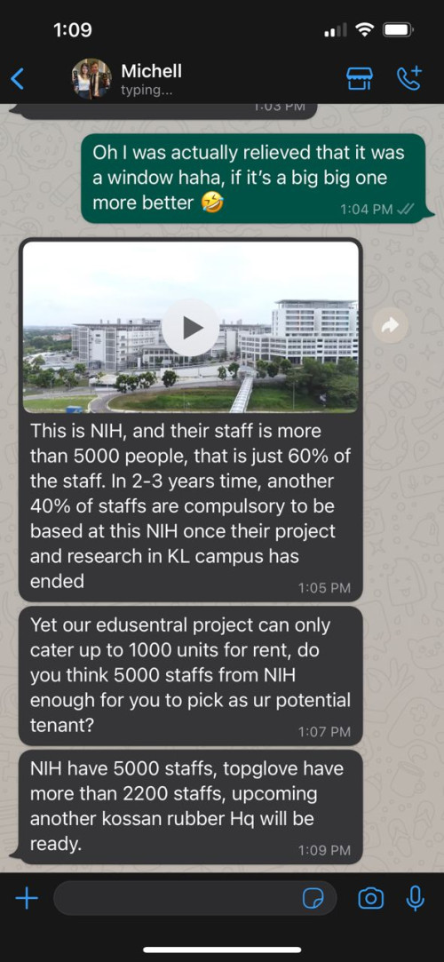 QUOTE(valerieyyw @ Jul 18 2022, 01:20 PM) <a href='https://pictr.com/images/2022/07/18/BtEUwl.md.jpg' target='_blank'>https://pictr.com/images/2022/07/18/BtEUwl.md.jpg </a> I am working in NIH, NIH do not have that huge number of staff. The total number of staff working in NIH should be less than 2000 (sorry for not able to tell the exact number). Also, there is no such thing as 40% of staff who are still base in KL and will be move in.Gotten these information from the property agent, and she mention how promising it is, would appreciate everyone's view on this jrshow and WantanSoup liked this post
