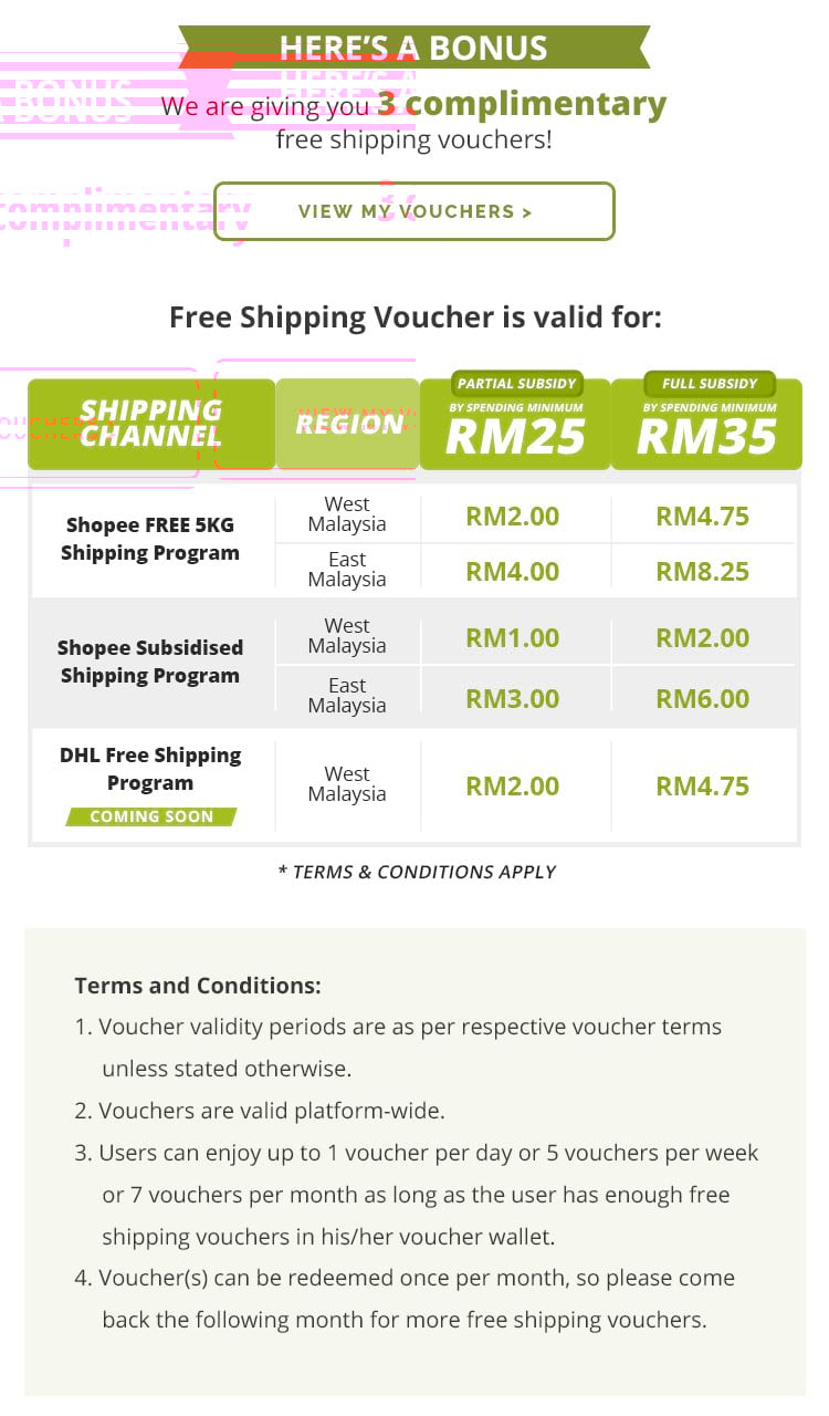 It is announced that from 1 Aug 2018, free delivery applicable only from free voucher my dear. However, think now the voucher still not yet start. QUOTE(life27 @ Aug 1 2018, 10:15 AM) above 35 is free my dear