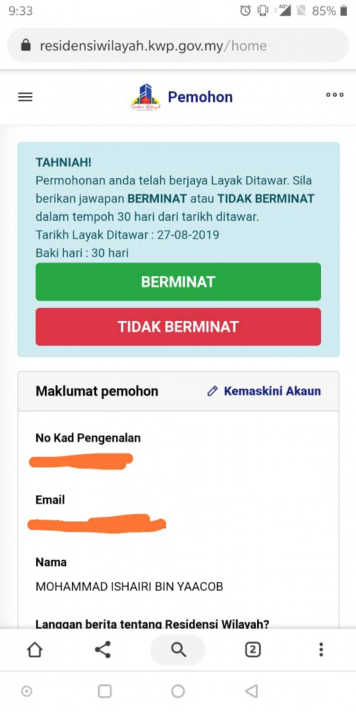 QUOTE(Kyubi69 @ Aug 27 2019, 10:25 AM) <a href='https://pictr.com/images/2019/08/27/5UU9LA.md.jpg' target='_blank'>https://pictr.com/images/2019/08/27/5UU9LA.md.jpg </a> I rejected kiara kasih before, then now successfully got another rumawip. But that was before residensi wilayah took over and updated their tncAnyone received this email? What will happen if I choose Tidak Berminat? Will i get banned from rumawip for 12 months as mentioned in their website. <a href='https://pictr.com/images/2019/08/27/5UURQ6.md.jpg' target='_blank'>https://pictr.com/images/2019/08/27/5UURQ6.md.jpg </a> |