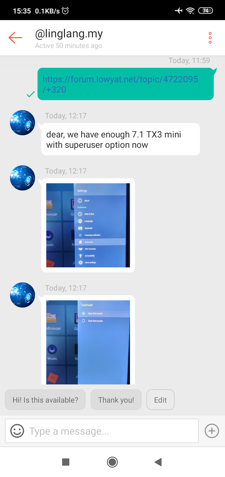 QUOTE(chipnuke @ Sep 29 2019, 11:07 PM) Hi guys , finally i found group discussing about this model , been using it almost 2 years already not sure but i think yr box firmware is a tad too old.buy direct from china using aliexpress , lastime i bought around RM120 this week i notice that my utube needs to be upgrade to new one , btw playtv i manage to watch tv1 and tv2 only ,astro never try hahaha btw where i can start ? please advice my model is TX3 Mini -A build no 20170906 android 7.1.2 i notice my version dont have superuser option at more settings my tx3 mini-A came with 2018 firmware, has superuser option. astrogo, unifi playtv all OK. recently, i upgraded to tx3max firmware - even better - all works good, got bluetooth working as well. but i am reluctant to encourage u to do same... quite a bit of work... and risk... u may brick it for good if not careful. |
