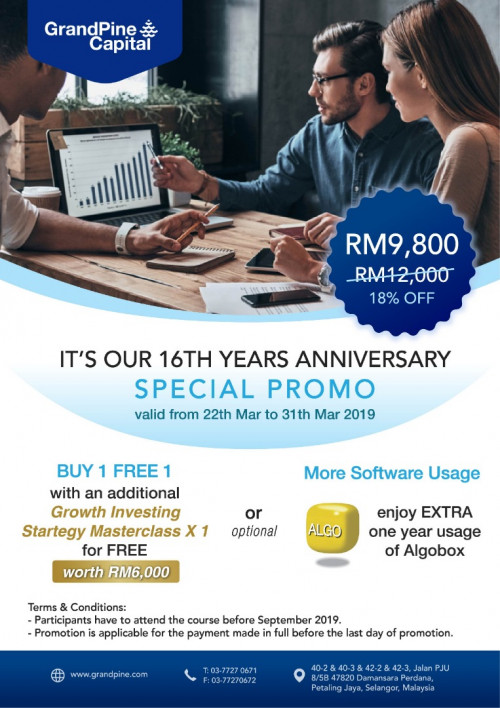 Hi everyone, Im looking for someone to share the fees with me for this Grandpine Capital buy 1 free 1 promo. The expiry date is at 31st March 2019. Normal price is RM9000+ per course per pax. Hope that I can find someone who is interested to share it with me as the course is quite costly doh.gif