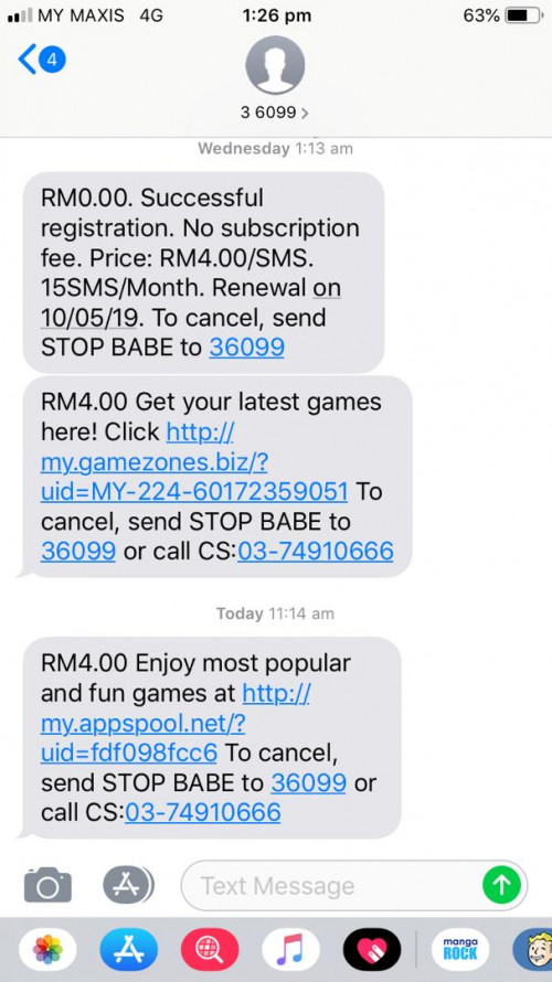 I have a hotlink prepaid and am getting spammed by this number. I did not subscribe to anything and i am unsure if they are charging me every time they send an sms.