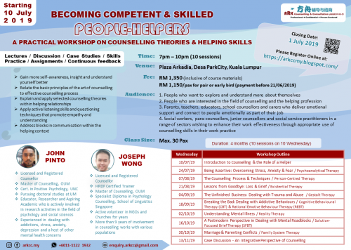 Don't miss out our workshop for self-development!!! Class starting from 10 July 2019, 10 x Wednesday, 7pm-10pm @ Plaza Arkadia, DPC, KL