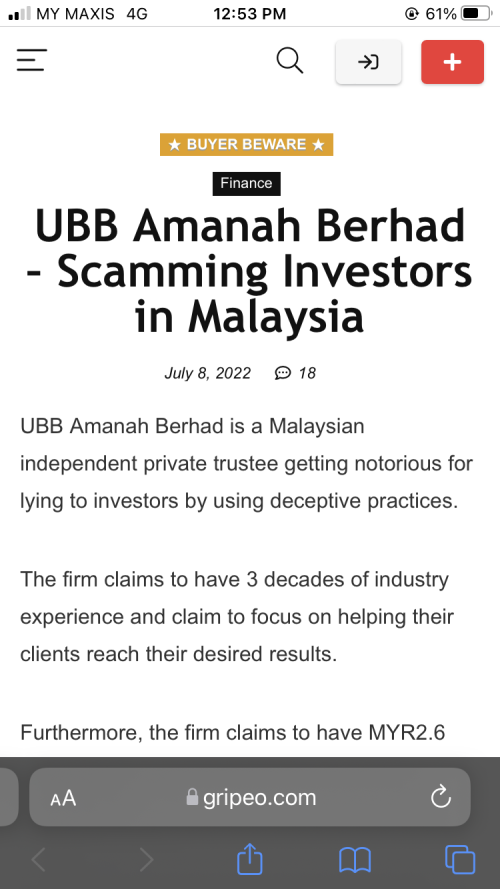UBB is a trust company which established more than 30years in market. This Cash trust launched since 2014, 3 years tenure, with bankruptcy proof, creditor proof and tax free benefits as normal trust. So far every year the trust giving 7% return per year. The return will be direct transfer to our bank account. Now they having promo for the fee reduce to 1%, i dont know whether your banker got inform u.