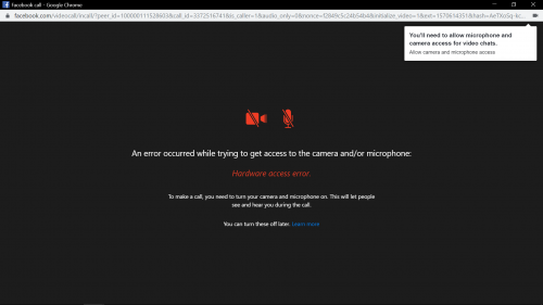 Facebook Hardware Access Error, Camera and Mic enabled but still error