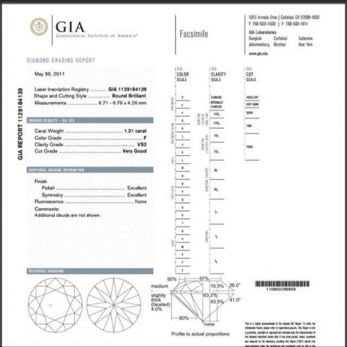 Item(s): GIA 1.21ct F/VS2 VG cut and EX Polish/Symmetry Diamond