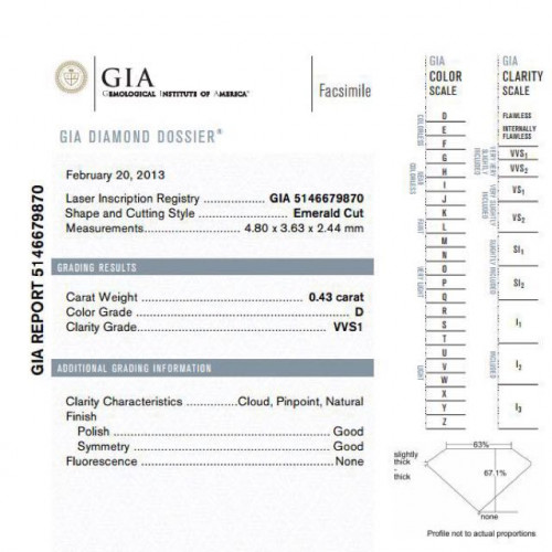 Item(s): GIA Emerald 0.43ct D/VVS1 Good Polish/Symmetry Diamond