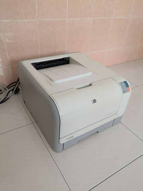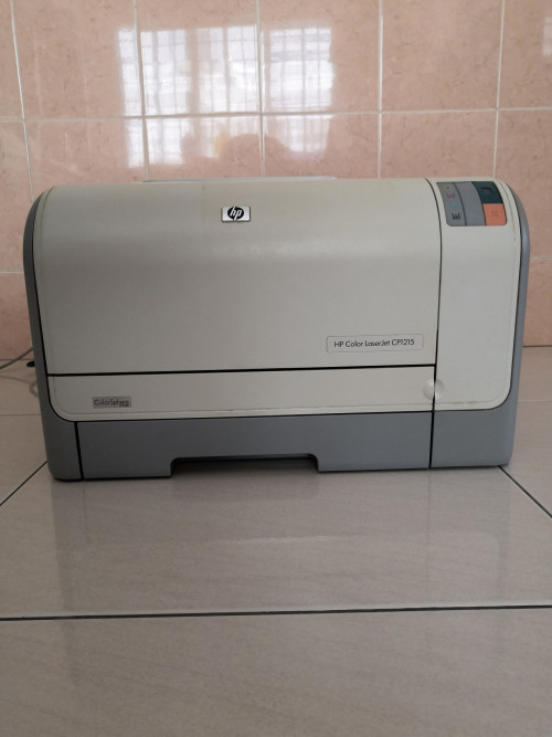 Package includes: HP Color LaserJet CP1215 Printer + Cartridges (Cyan & Black ~50% ink, Yellow & Red empty)