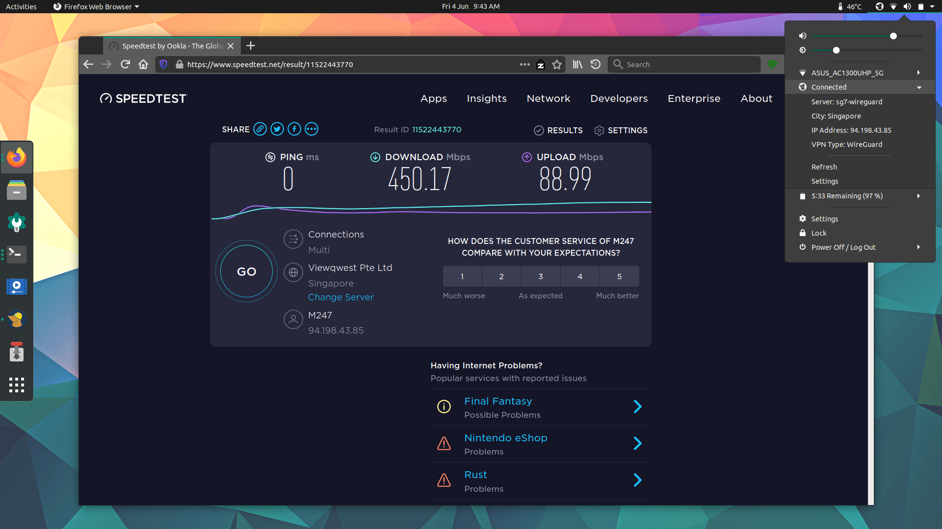 Sepatutnya latency jika ke Singapore mungkin paling tinggi pun mencecah 50ms, tetapi apabila isu ni berlaku, boleh mencecah sehingga 500ms.