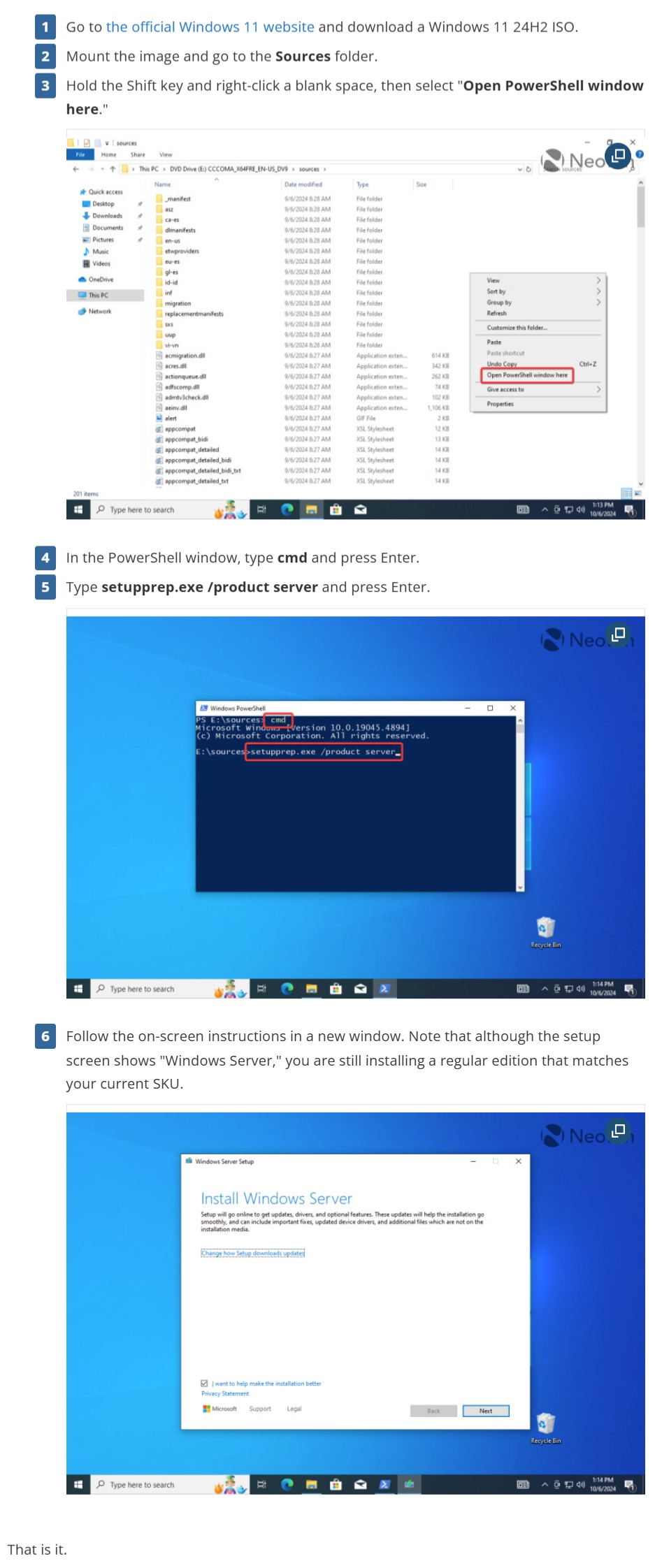 QUOTE(Xploit Machine @ Oct 12 2024, 10:52 PM) Can. No TPM, no problem.Any old cpu that supports SSE4.2 will be fine for Win11 24H2. ![]() Just complete Option 1 - Steps 1 to 6. https://www.neowin.net/guides/how-to-instal...orted-hardware/ ![]() |
